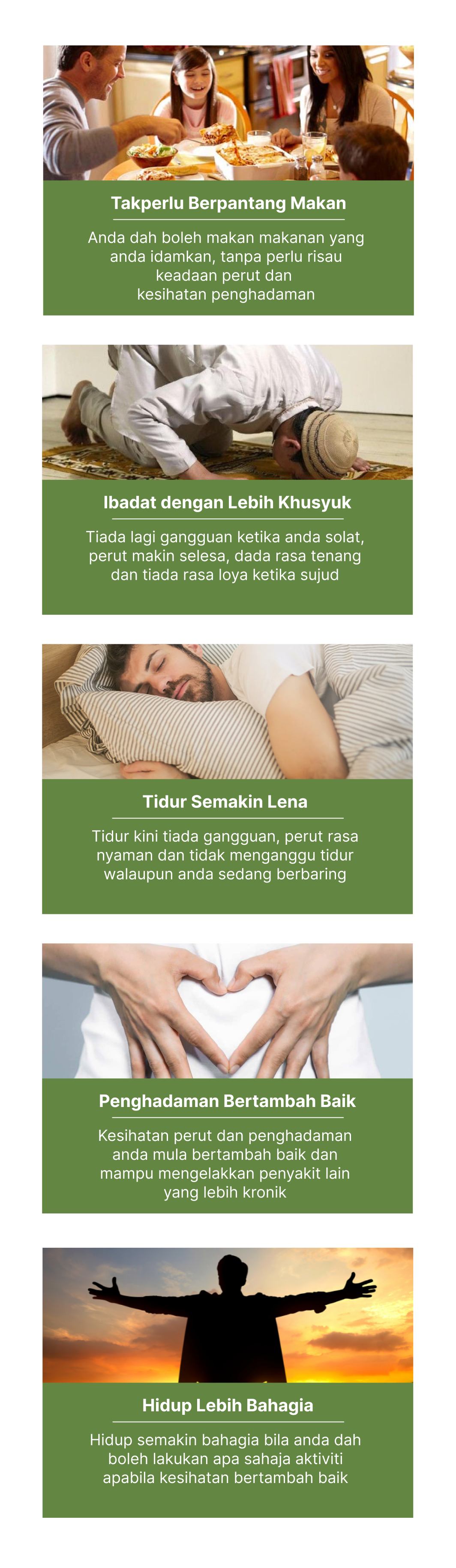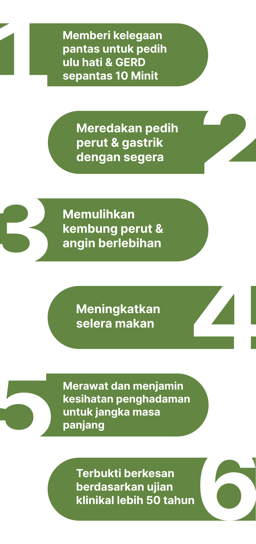 GaztroPlus Diformulasikan dengan Bahan Semulajadi 100% dan tiada kesan sampingan.