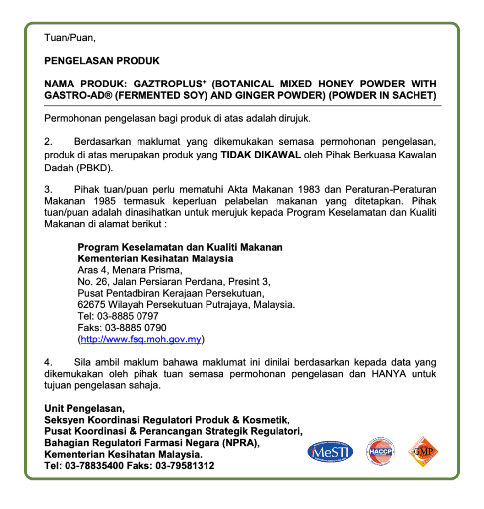 Gastroplus diformulasikan dari bahan semulajadi yang selamat untuk diamalkan.